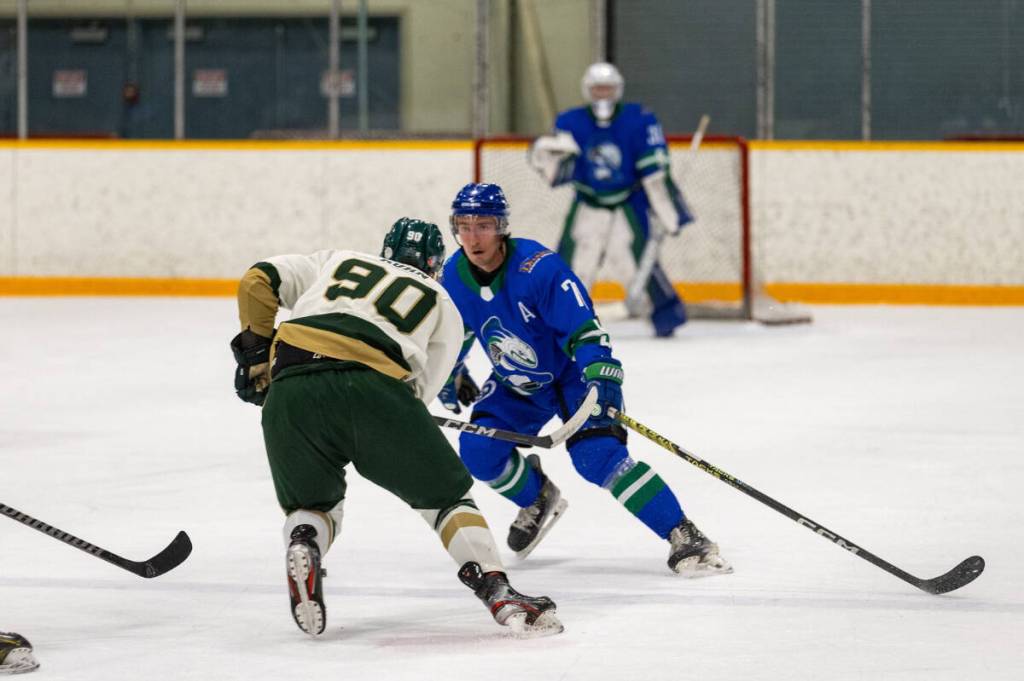 Morgan Hackman of the Humboldt Broncos crunches Battlefords player through rink glass